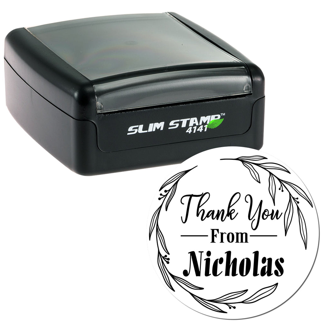 Elevate your brand's personal touch with our Portable Pre-Inked Hand Drawn Elegant Gratitude Stamper - a perfect blend of sophistication and convenience in a compact 1-5/8" round design. Transform every customer interaction into a memorable moment with our beautifully crafted botanical wreath design and elegant cursive lettering.