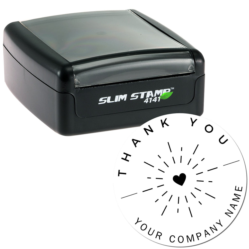 Transform your customer communications with our Premium Personalized Thank You Stamp - the perfect blend of professionalism and warmth for your small business! This sleek 1-5/8" round pre-inked stamp features an elegant design with "Thank You" text, your company name, and a charming heart symbol that speaks volumes about your appreciation.
