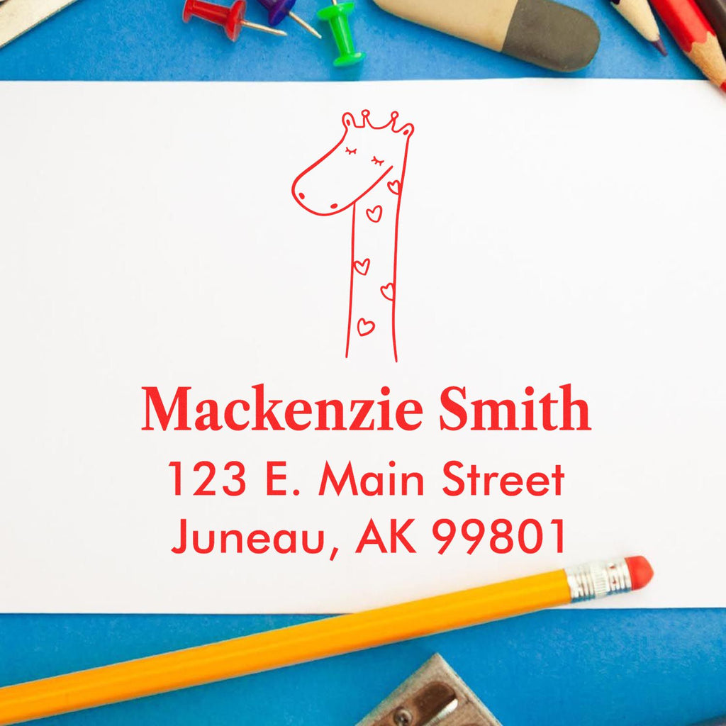- PERSONALIZED ELEGANCE: Transform your correspondence with our pre-inked giraffe address stamp, featuring a charming design with heart-shaped spots. Makes up to 15,000 crisp impressions before needing re-inking. Perfect for adding whimsical charm to envelopes and packages.