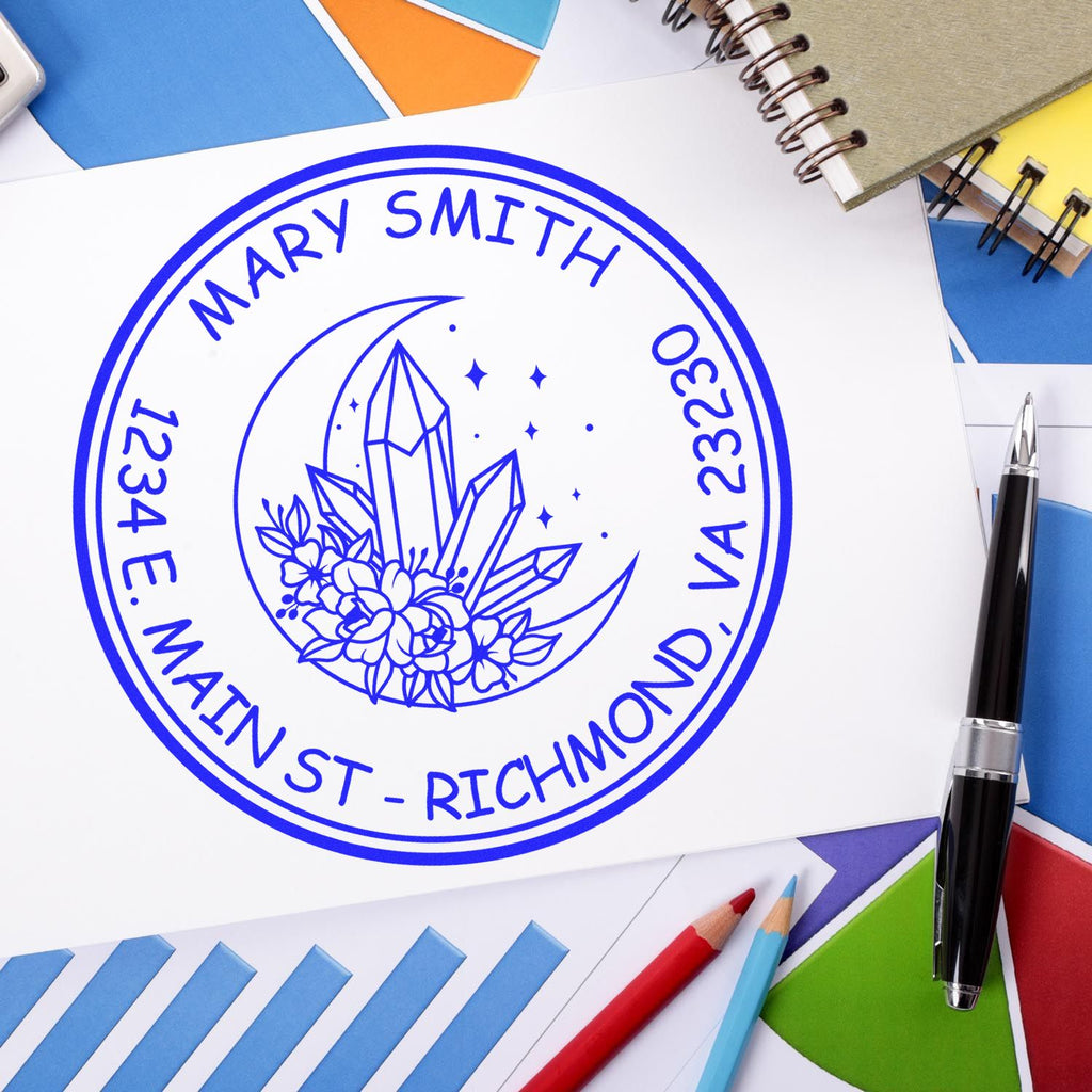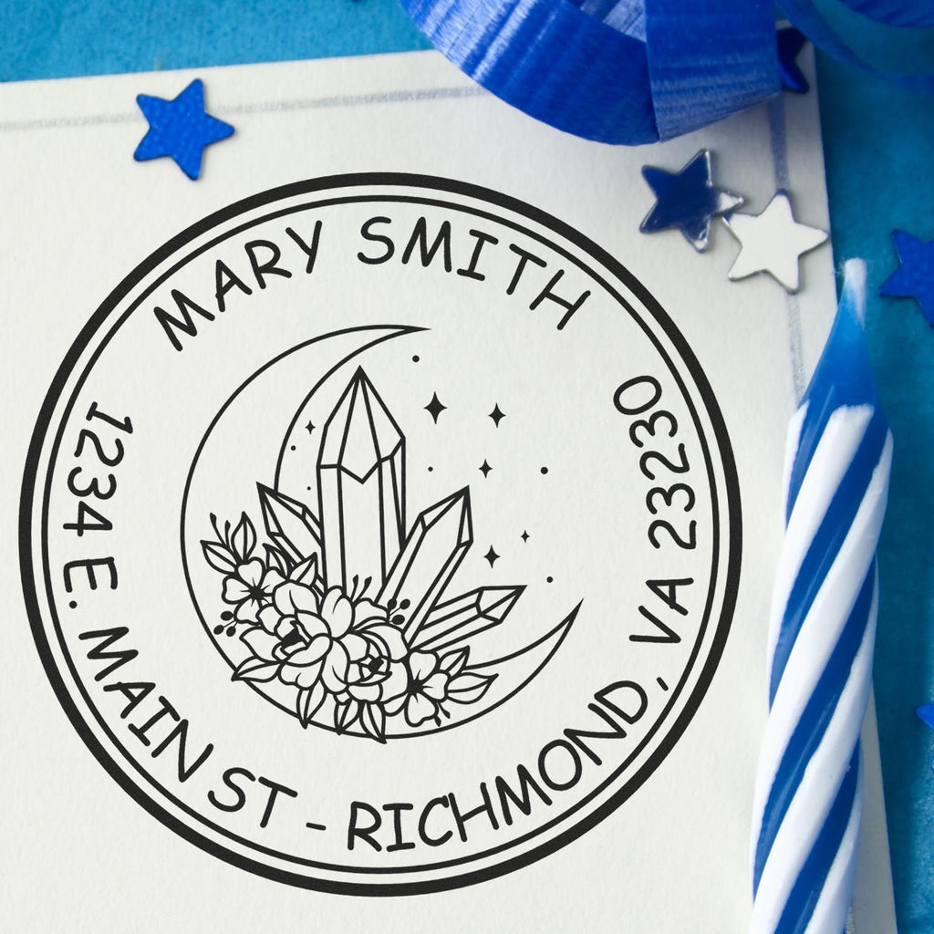 - • PERSONALIZED ELEGANCE: Transform your mail with our mystical moon and crystal design, featuring your custom name and address elegantly arranged in a double-circle border. Makes a stunning impression every time.