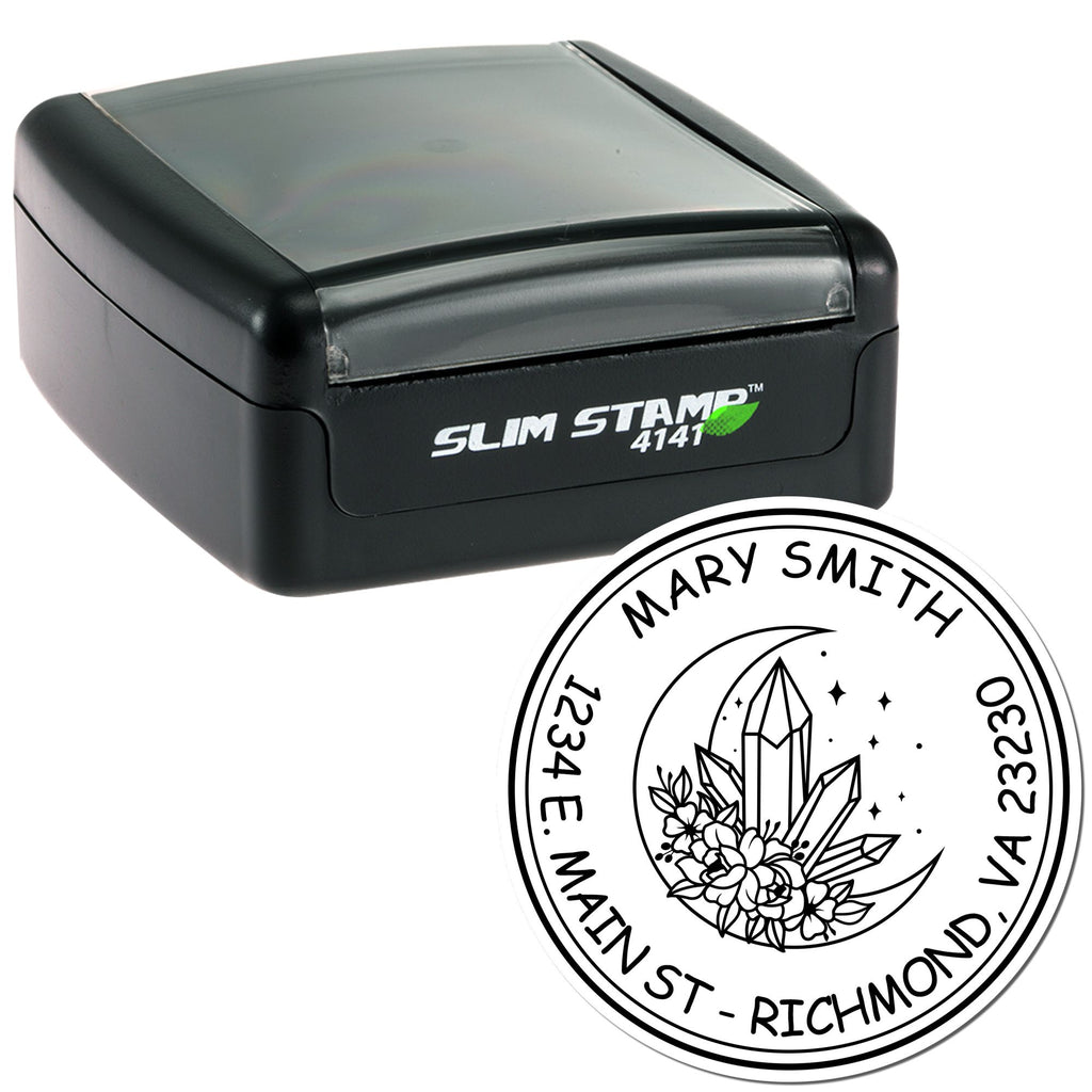 Portable Pre-Inked Mysterious Moon Personalized Return Address Stamper Highlights and Features