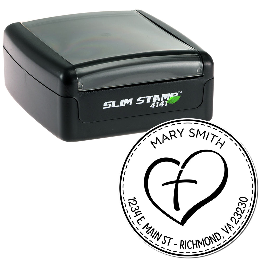 Portable Pre-Inked Pious Heart Custom Made Envelope Stamp Highlights and Features