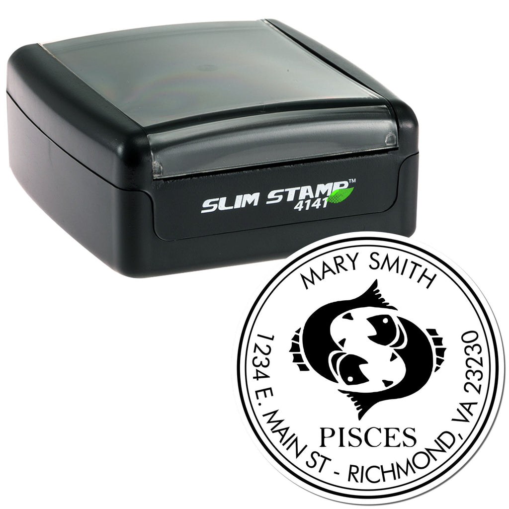 Keywords: Customized Return Address Stamper, Personalized Return Address Stamper, Pisces Zodiac Stamp, Portable Pre-Inked Stamp, Slim Address Stamp.
