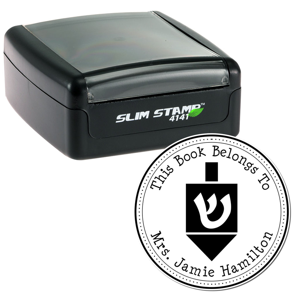 - ELEVATE YOUR STAMPING GAME with our Portable Pre-Inked Playful Dreidel Customized Name and Address Stamper! This chic Slim Stamp is designed for effortless portability, making it the perfect companion for busy parents and guardians. Slip it into your bag and be ready to stamp anywhere!