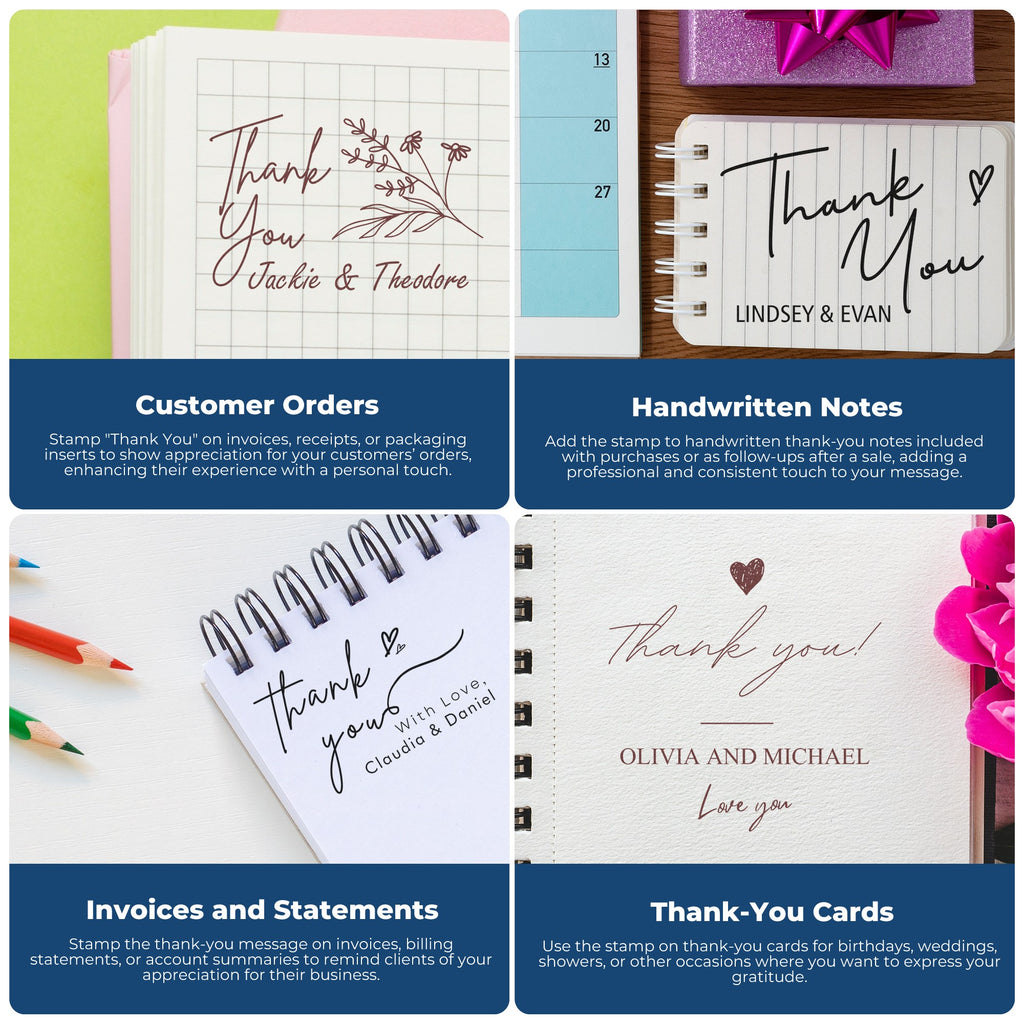 - CUSTOMIZABLE DESIGN: Enhance your brand with a custom "Thank You" stamp featuring your logo. Add a personal touch to notes and packages, boosting brand loyalty and leaving a lasting impression.