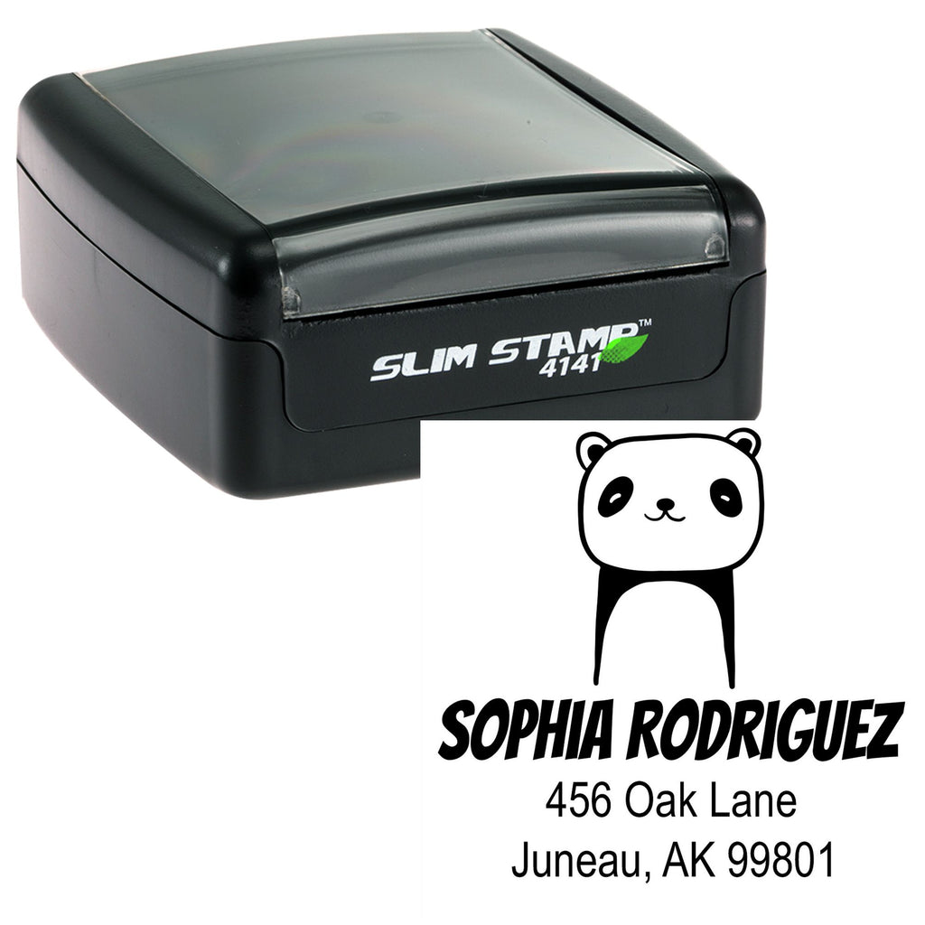 Portable Pre-Inked Playful Panda Custom Designed Name And Address Stamp Highlights and Features