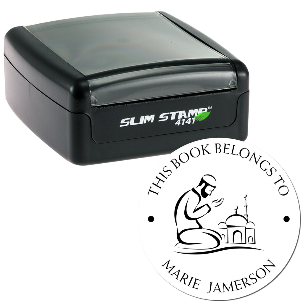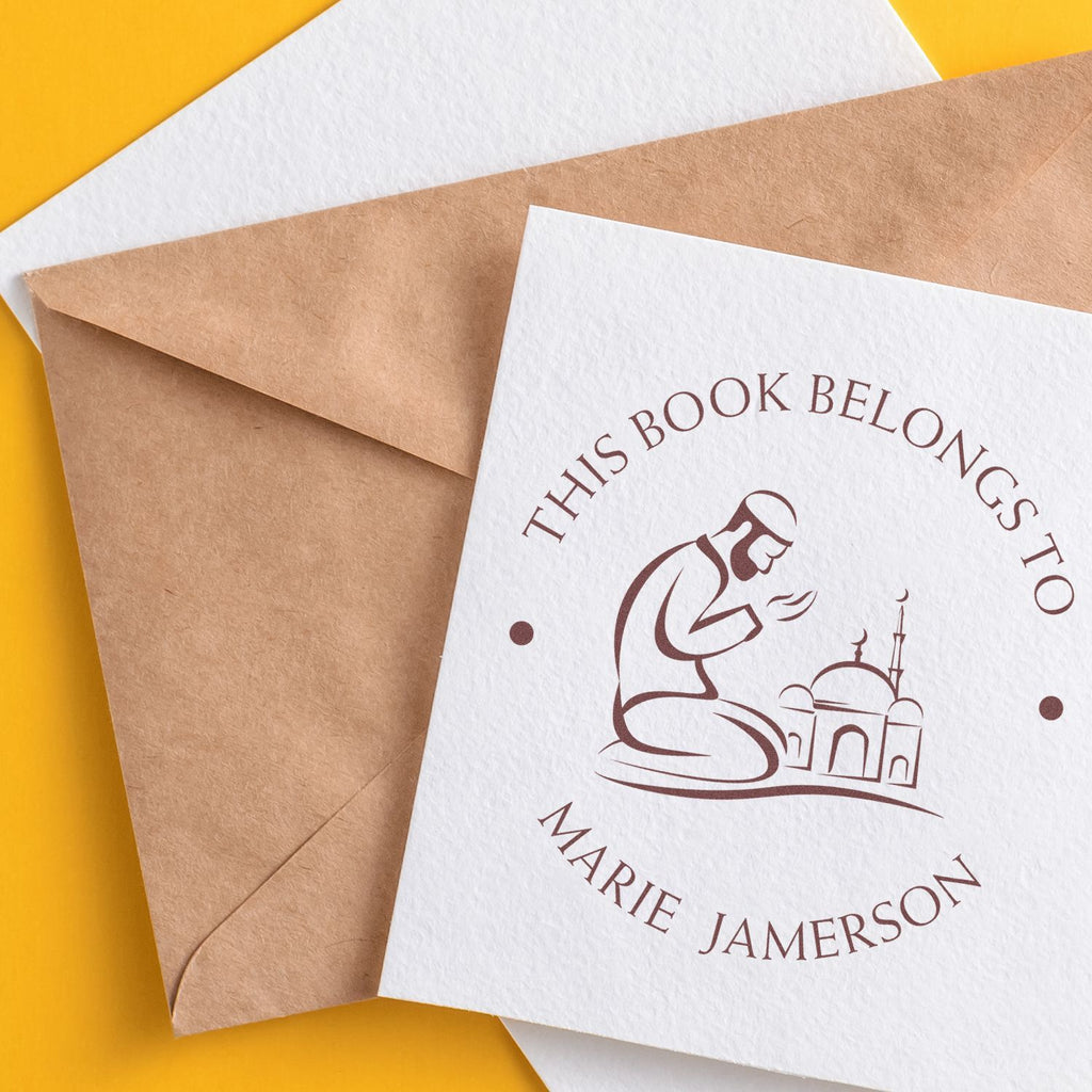 Unique Design Features This library stamp features a center image of a Praying Man kneeling, symbolizing thoughtfulness and care in your correspondence. The design includes a clean round shape with phrases such as "This Book Belongs To," "From The Library of," and "Ex Libris" at the top arc, followed by your name or another saying at the bottom arc. The top arc text and bottom arc text are separated by two dots in the center, creating a balanced and aesthetically pleasing impression. The impression size is 1-5/8" in diameter, making it the perfect size for a variety of uses.