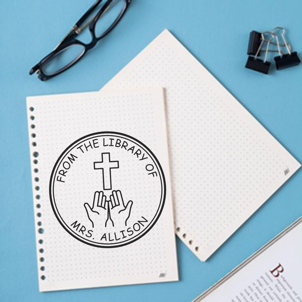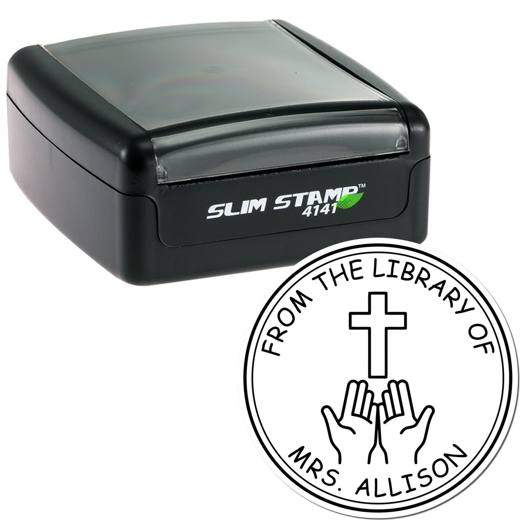 Are you ready to elevate your correspondence game? Meet our chic Slim Stamps, the ultimate portable stamping solution designed for the modern go-getter! This isn’t just any stamp; it’s a statement piece that combines elegance with functionality. Perfectly sized at 1-5/8" in diameter, this stamp features a beautifully crafted design of a Reverential Cross with praying hands, encircled by a double concentric solid circular border. The top arc proudly displays the words "From The Library of," while the bottom arc invites readers to "Read it, Love it, Return it." Whether you’re sending out invitations, thank you notes, or newsletters, this stamp adds a personal and spiritual touch to your envelopes, making every piece of mail feel special.