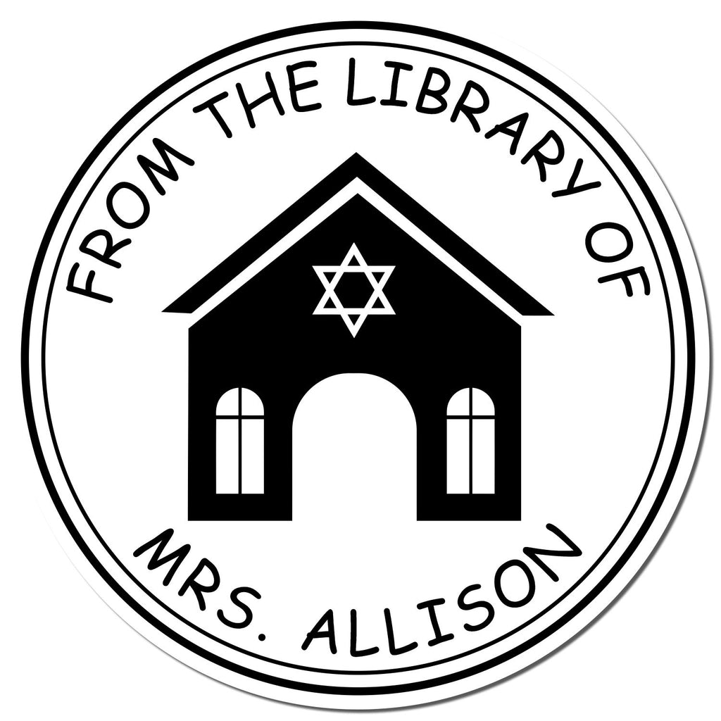 Sleek Design Meets Functionality Our Slim Stamp features a stunning design that showcases a center image of a Sacred Learning religious school, surrounded by a double concentric solid circular border. The top arc proudly displays the words "From The Library of," while the bottom arc invites readers to "Read it, Love it, Return it." With an impression size of 1-5/8" in diameter, this stamp is not only visually appealing but also practical for all your stamping needs.