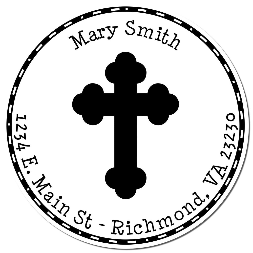 Elevate Your Correspondence with Our Portable Pre-Inked Spiritual Cross Custom Made Name and Address Stamp! Are you looking for a way to add a personal touch to your correspondence while showcasing your faith? Look no further! Our Portable Pre-Inked Spiritual Cross Custom Made Name and Address Stamp is the perfect solution for individuals who want to infuse their mail with a spiritual essence. This unique stamp features a beautifully designed Spiritual Cross at its center, surrounded by a solid circle border adorned with white dashes and dots. Your name elegantly arcs at the top, while your address or a meaningful saying graces the bottom arc, creating a stunning impression that reflects your beliefs and personality.
