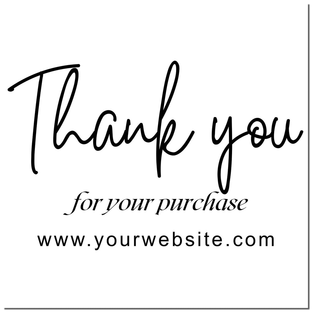 Measuring a perfect 1-5/8" square, this portable stamp features an elegant script "thank you" paired with your custom text in a modern serif font. The minimalist design ensures your gratitude message stands out while maintaining professional sophistication.