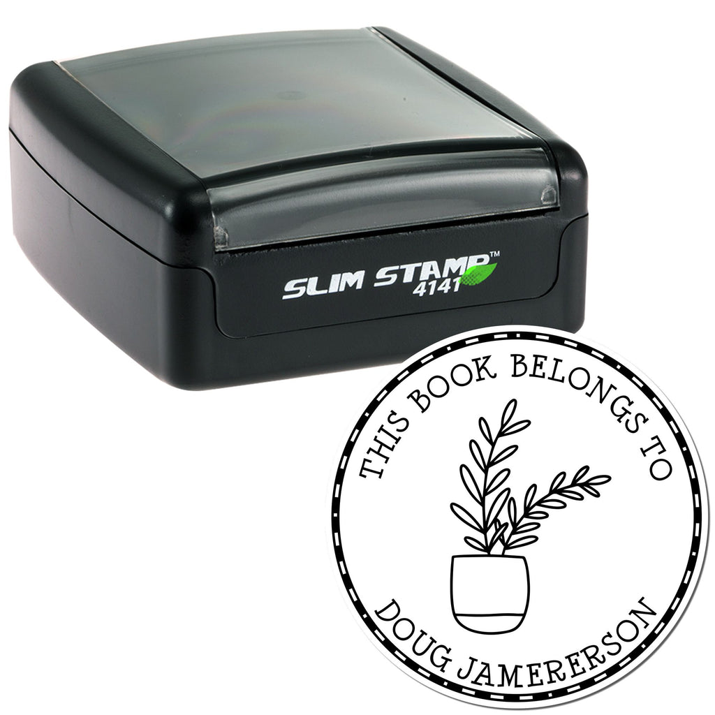 A Personal Touch to Your Library Our "Round Ex Libris" stamp is not just a tool; it’s a statement of ownership. Featuring a delightful center image of a tall plant in a short vase, this design is both elegant and meaningful. The solid circle border filled with white dashes and dots adds a unique flair, while the phrases such as "This Book Belongs To," "From The Library of," and "Ex Libris" can be customized with your name or a personal saying at the bottom arc. With an impression size of 1-5/8" in diameter, this stamp is the perfect size to make a statement without overwhelming your book's design.