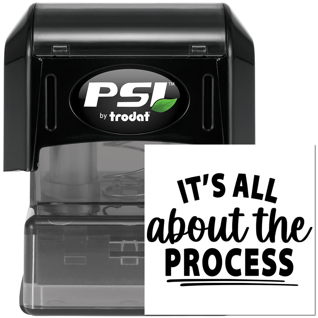 Freshen up your packaging and projects with the PSI Pre-Inked “IT’S ALL about the PROCESS” 1-5/8" square stamp — a playful banner design that arches “IT’S ALL,” swirls “about the,” and anchors “PROCESS” in chunky letters with two lines underneath for bold, photo-ready branding.