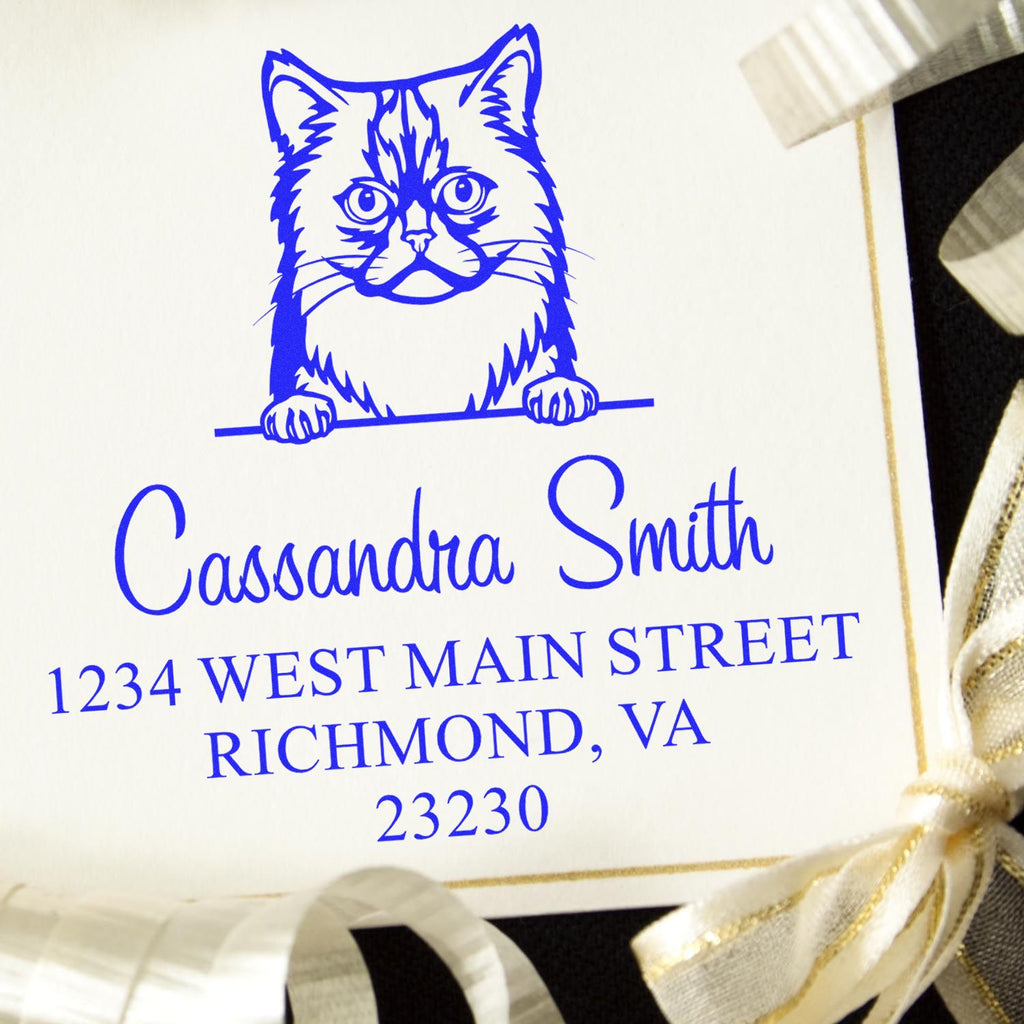 Pre-Inked Asian Semi Longhair Cat Personalized Return Address Stamp Highlights and Features