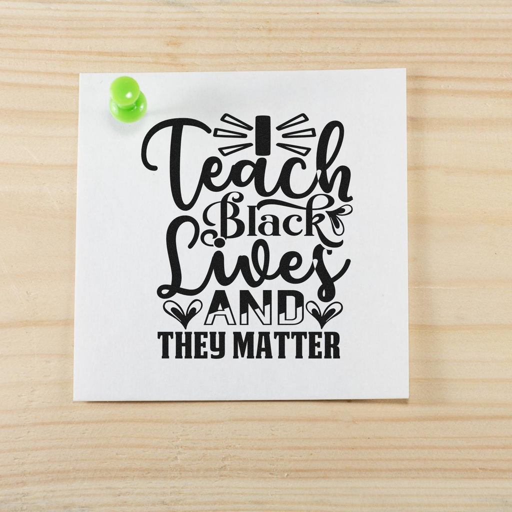 Playful black lettering delivers a strong yet welcoming call to celebrate Black lives through learning, while whimsical hearts and sunbursts draw attention to the message. The hand-drawn, lively style shows that teaching about Black lives is both important and joyful—ideal for bulletin boards, journals, scrapbooks, and classroom decor that radiate pride and positivity.