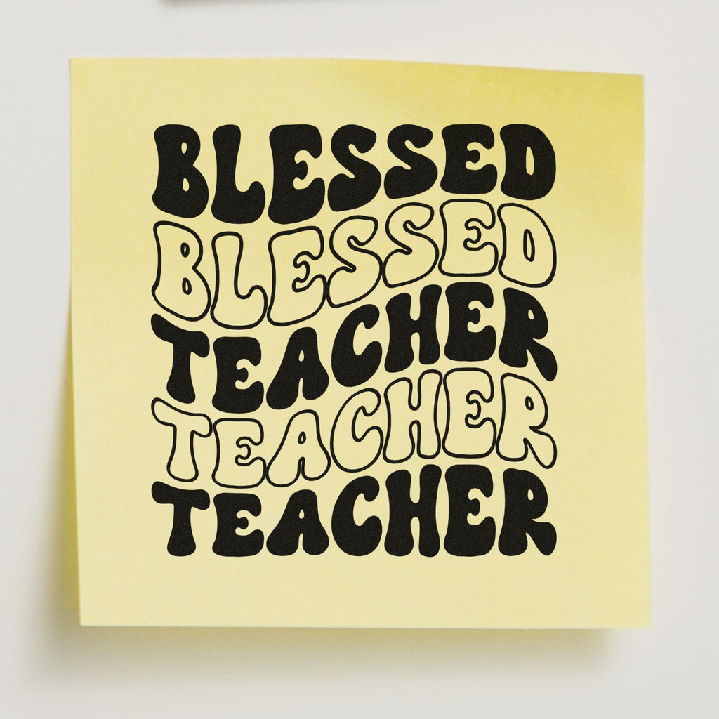 - Playful: 1-5/8" square design features bubbly, alternating solid and outline lettering that spells BLESSED and TEACHER for an upbeat, heartwarming look kids and parents will love.