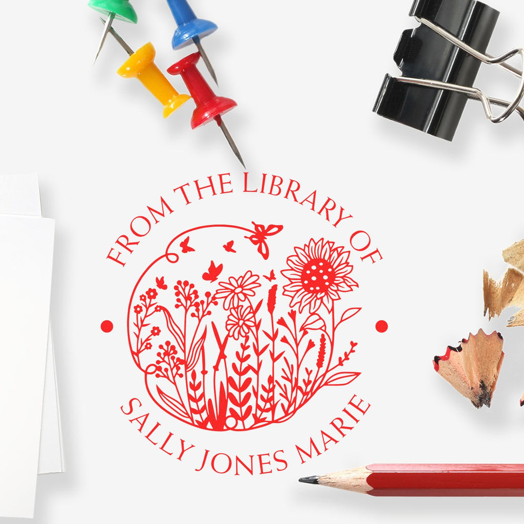 - PERSONALIZATION PERFECTION: Create a lasting impression with this elegant 1-5/8" diameter book stamp, featuring a charming Blooming Field of Flowers design that adds sophistication to your library collection.