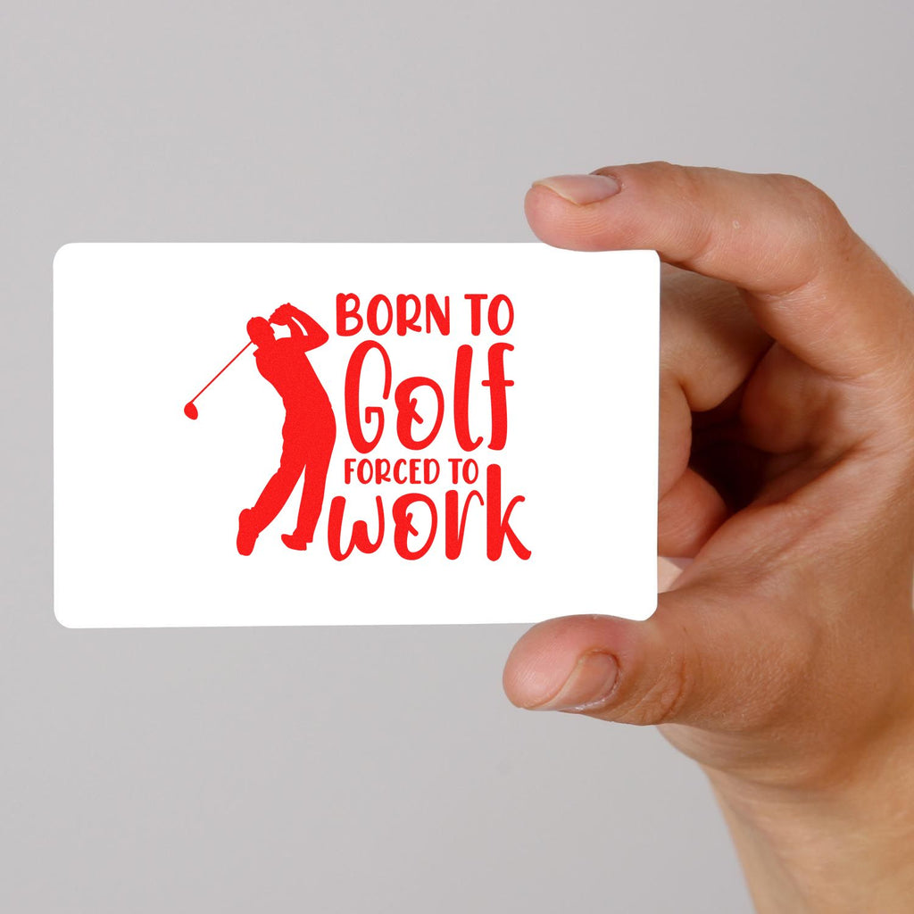- Personality: Feature the playful “Born to Golf / Forced to Work” silhouette to add charm and personality to stationery, wrapping, and promotional materials for golf lovers.