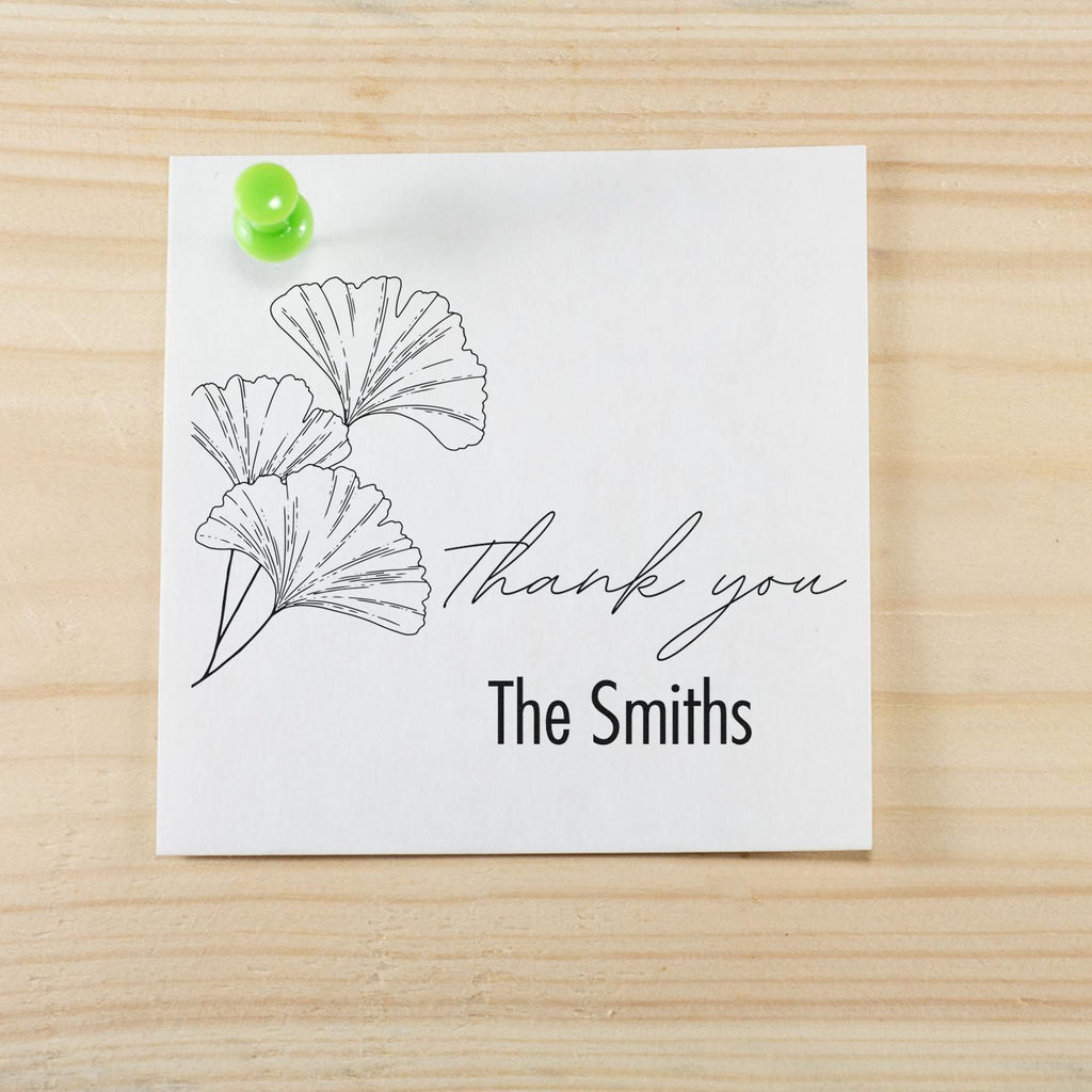 - ELEGANT BOTANICAL DESIGN: Featuring hand-drawn ginkgo leaves and sophisticated typography, this 1-5/8" square stamp adds natural elegance to your correspondence. Combines modern and script fonts for timeless appeal.