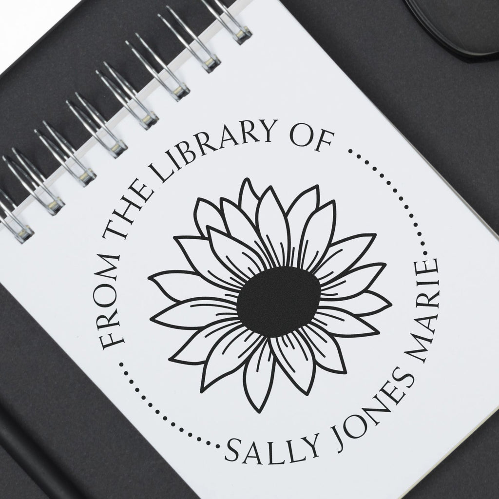 - PERSONALIZED LIBRARY ELEGANCE: Transform your book collection with our sunflower-adorned stamper, featuring custom text and a beautiful floral design that makes your books instantly recognizable and adds a touch of sophistication.