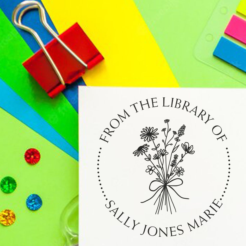 - PERSONALIZED ELEGANCE: Beautiful floral bouquet design adds a charming, sophisticated touch to your book collection. Pre-inked for immediate use with up to 15,000 crisp impressions. Perfect size at 1-5/8" diameter for standard book pages.