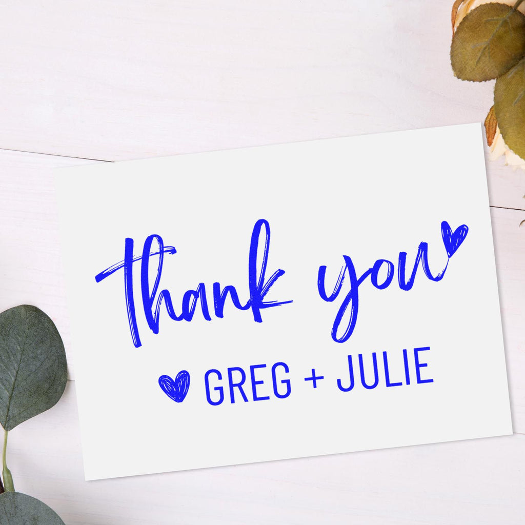 - CUSTOM THANK YOU DESIGN - Featuring elegant brushstroke lettering with charming heart accents in a generous 1-5/8" square size. Makes your gratitude stand out with style and personality.