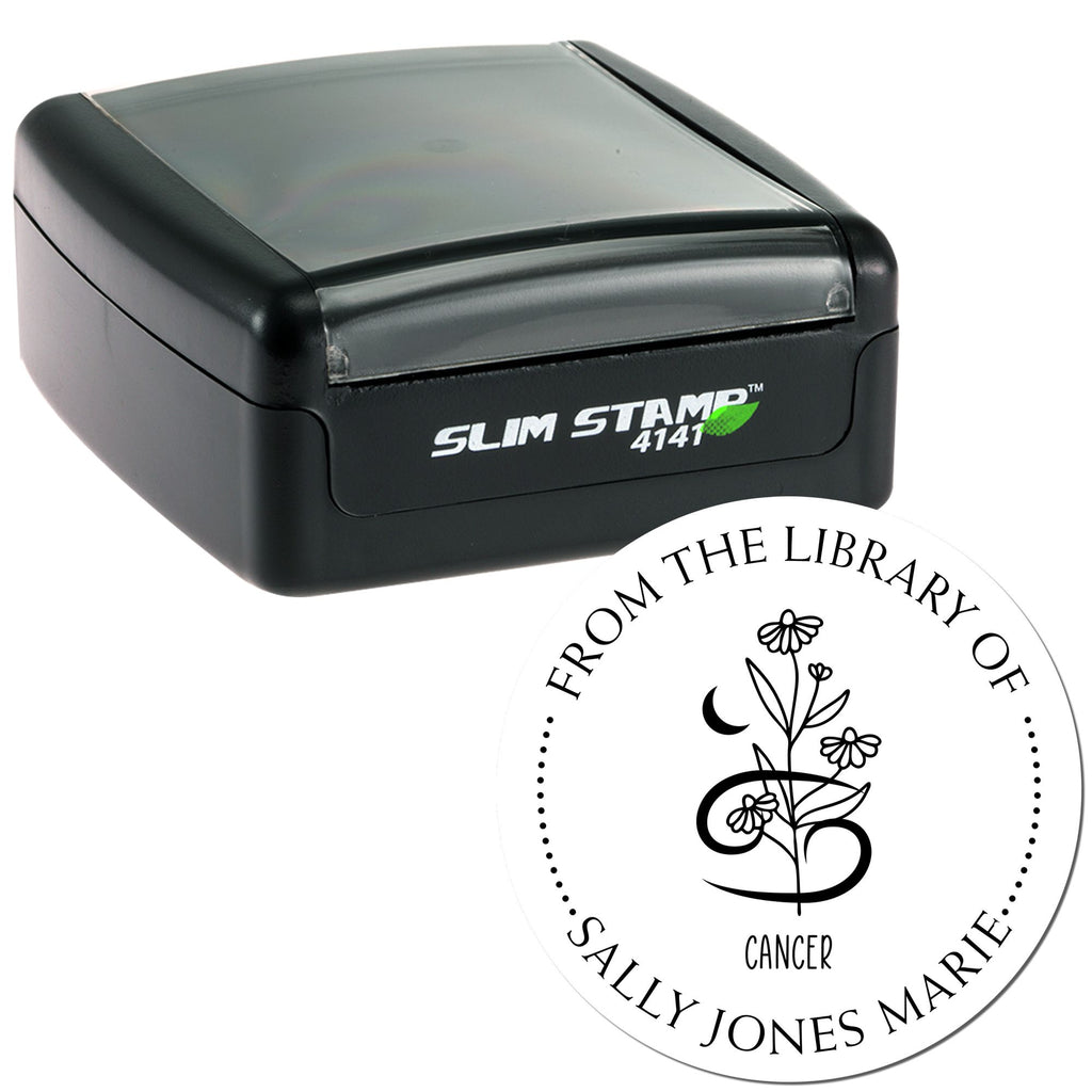 Pre-Inked Cancer Zodiac Symbol with Flowers Customized Name Inscription Stamp Highlights and Features