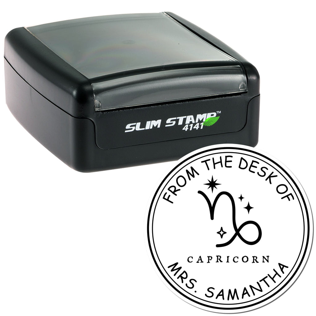 Pre-Inked Capricorn Library with Stars Custom Personal Library Stamp Highlights and Features
