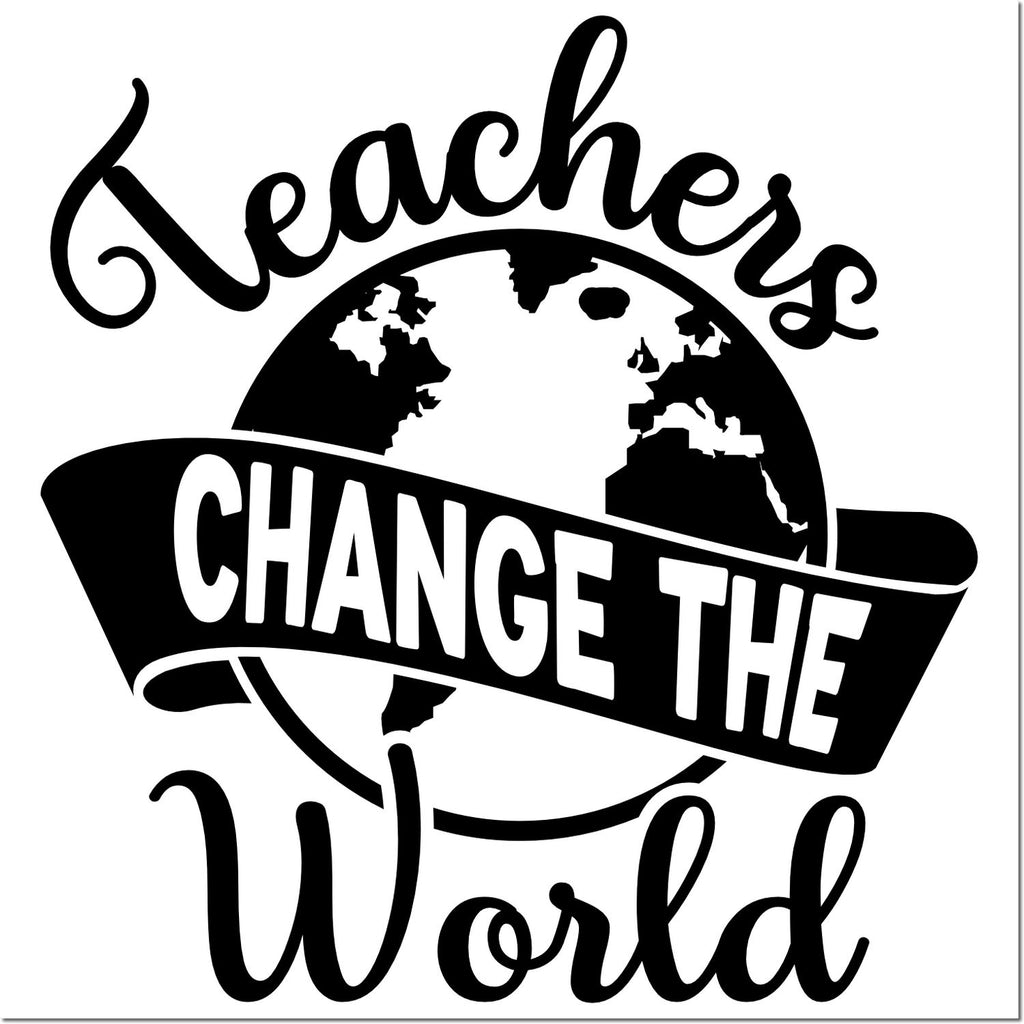 Sized at a versatile 1-5/8" square, the design features a playful globe at the center, wrapped in a bold banner that radiates energy and positivity. “Teachers” arcs above in a fun, bouncy font, while “Change the World” flows between the banner and a coordinating script below. The black-and-white artwork prints with striking clarity, making every impression feel empowering, professional, and ready to stand out on bulletin boards, student work, envelopes, and packaging.