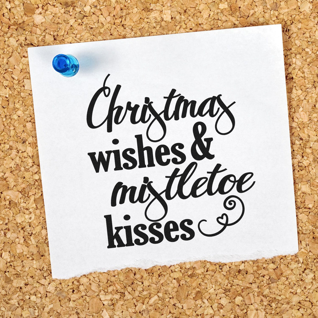 Featuring a playful black-and-white design, this 1-5/8" square stamp showcases a festive message in a mix of graceful script and bold block lettering. Elegant swirls and a tiny heart add a touch of romance and cheer, making it perfect for Christmas party favors, seasonal cards, gift tags, and cozy holiday decor. It’s the sweetest way to send “Christmas wishes & kisses” with every package or present.