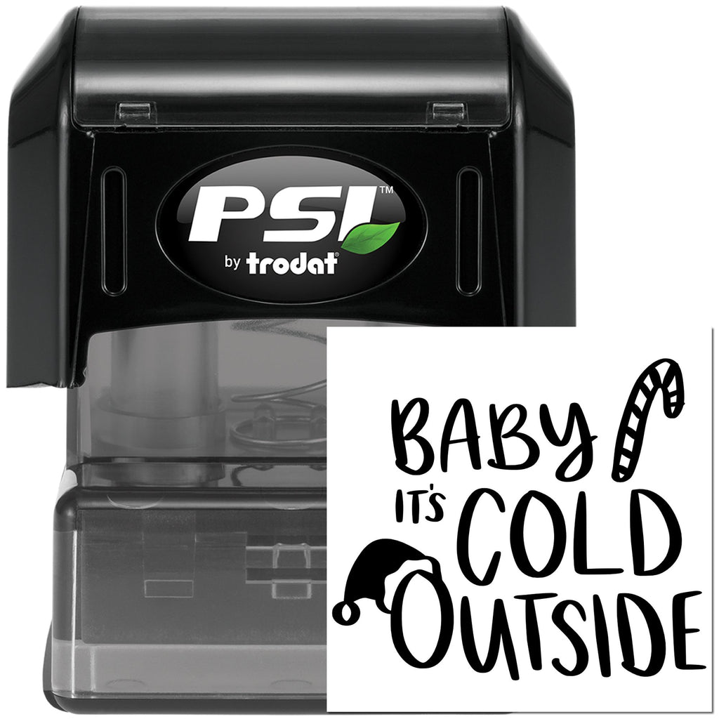 Spread holiday cheer with the PSI Pre-Inked Classic Christmas Song Greeting Card Stamp — a playful 1-5/8" square stamp featuring “Baby it’s cold outside” in bold, goofy lettering, a candy-cane topping the Y in “Baby,” and a Santa hat perched on the O in “Outside.” The charming black-and-white, hand-drawn design adds instant festive flair to cards, tags, envelopes, and packaging.