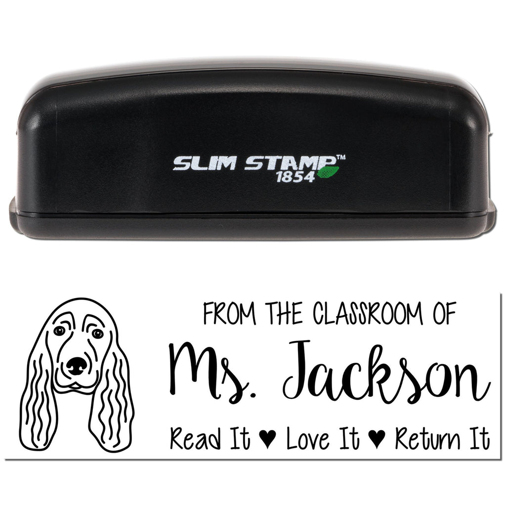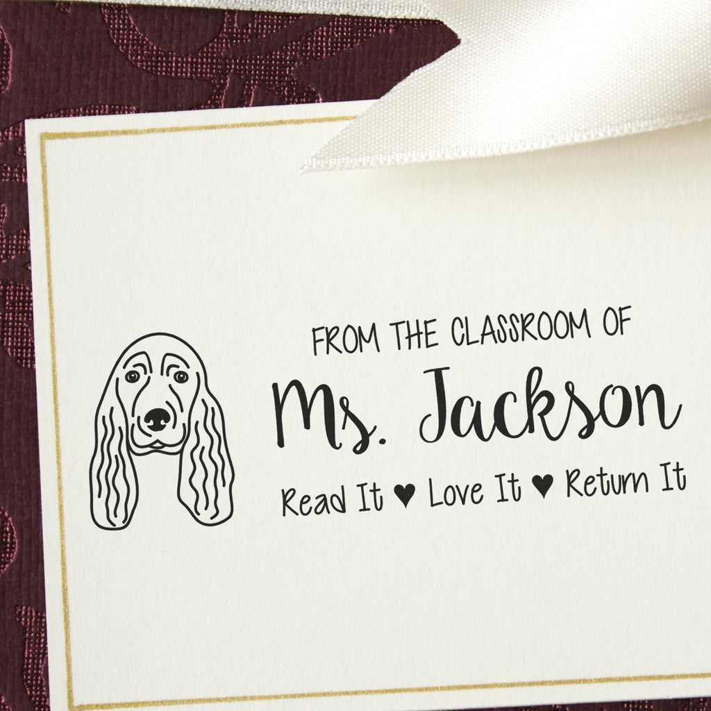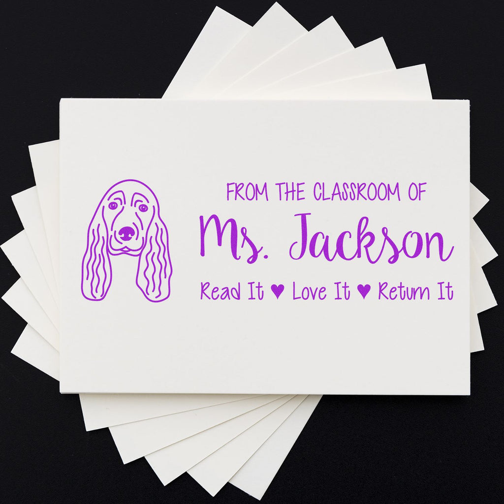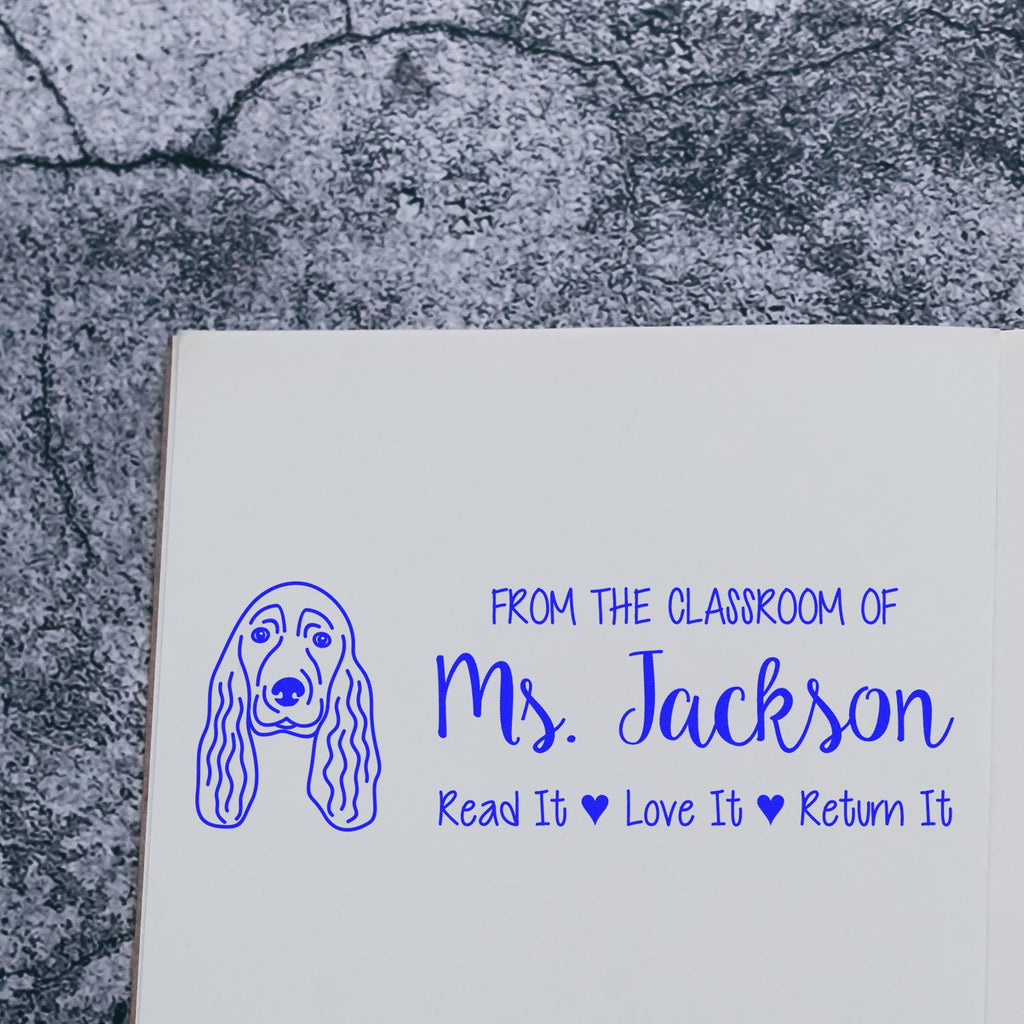 - PERSONALIZED TEACHING TOOL: Transform your classroom organization with this custom pre-inked Cocker Spaniel stamp, featuring your name and the phrase "from the classroom of." Perfect for book labeling and student materials.
