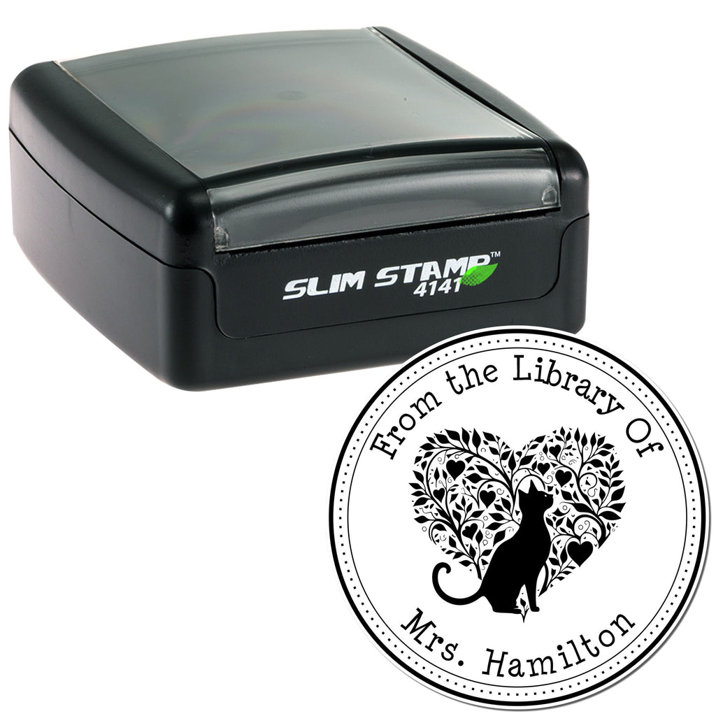 - PERSONALIZE YOUR LIBRARY with our Custom Made Library Name Stamp! This elegant Ex Libris stamp features a charming Comforting Kitty design, perfect for cat lovers who want to add a personal touch to their book collection. Make your mark and ensure your books are returned with style!