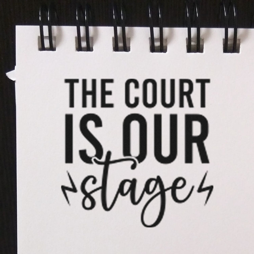 - Create cohesion: Bold 1-5/8" square artwork: “Our Court!” in playful block letters with sweeping “the Stage” script and lightning bolts: gives every page a professional, themed look for team scrapbooks and memory books.