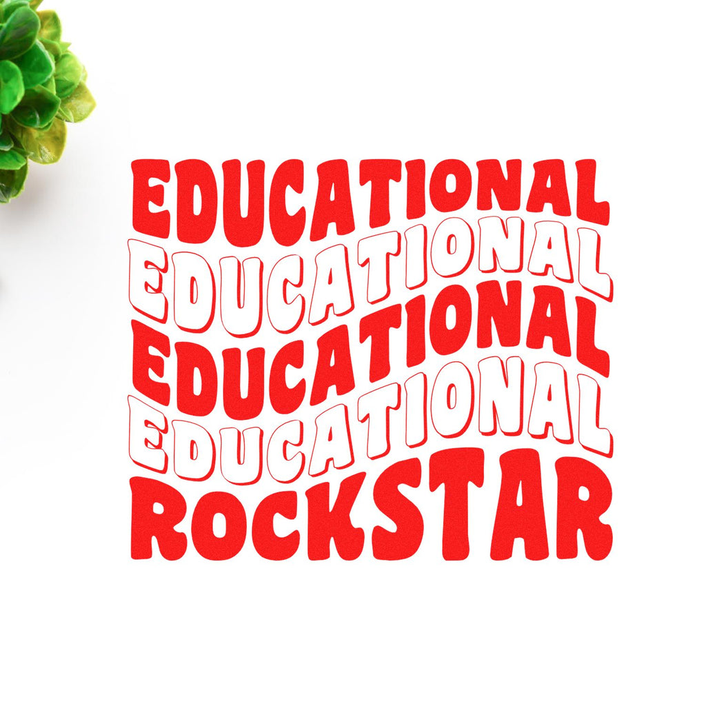 Four bold, wavy EDUCATIONAL words in black and white stack above a chunky solid-black ROCKSTAR, creating a fun, high-contrast design that practically shouts, “You did it!” The playful typography and graphic style make every impression feel like a VIP backstage pass, giving students a tangible badge of honor they’ll want to show off on cards, journals, homework, and take-home notes.