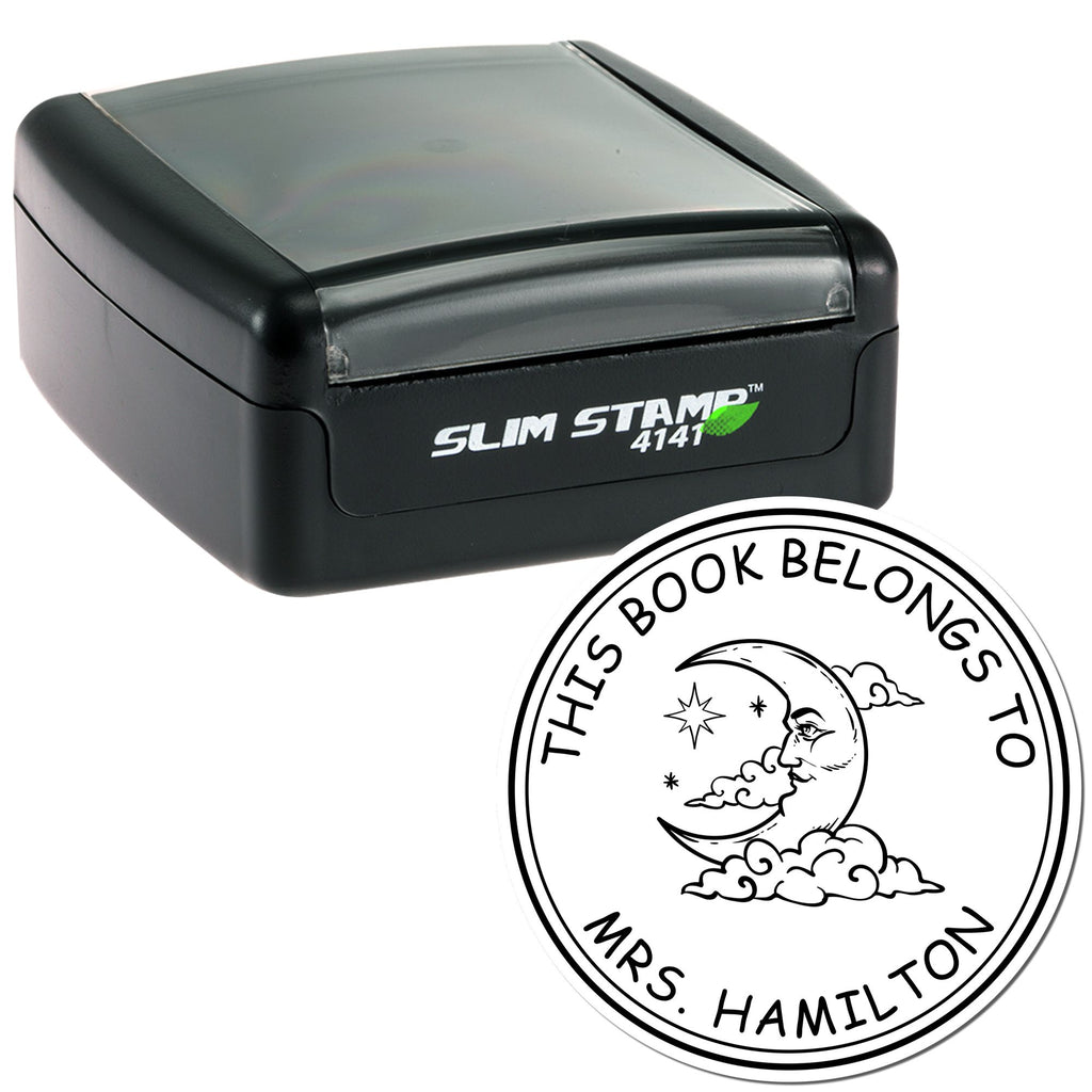 Pre-Inked Efflorescent Moon Personalized This Book Belongs To Stamp Highlights and Features