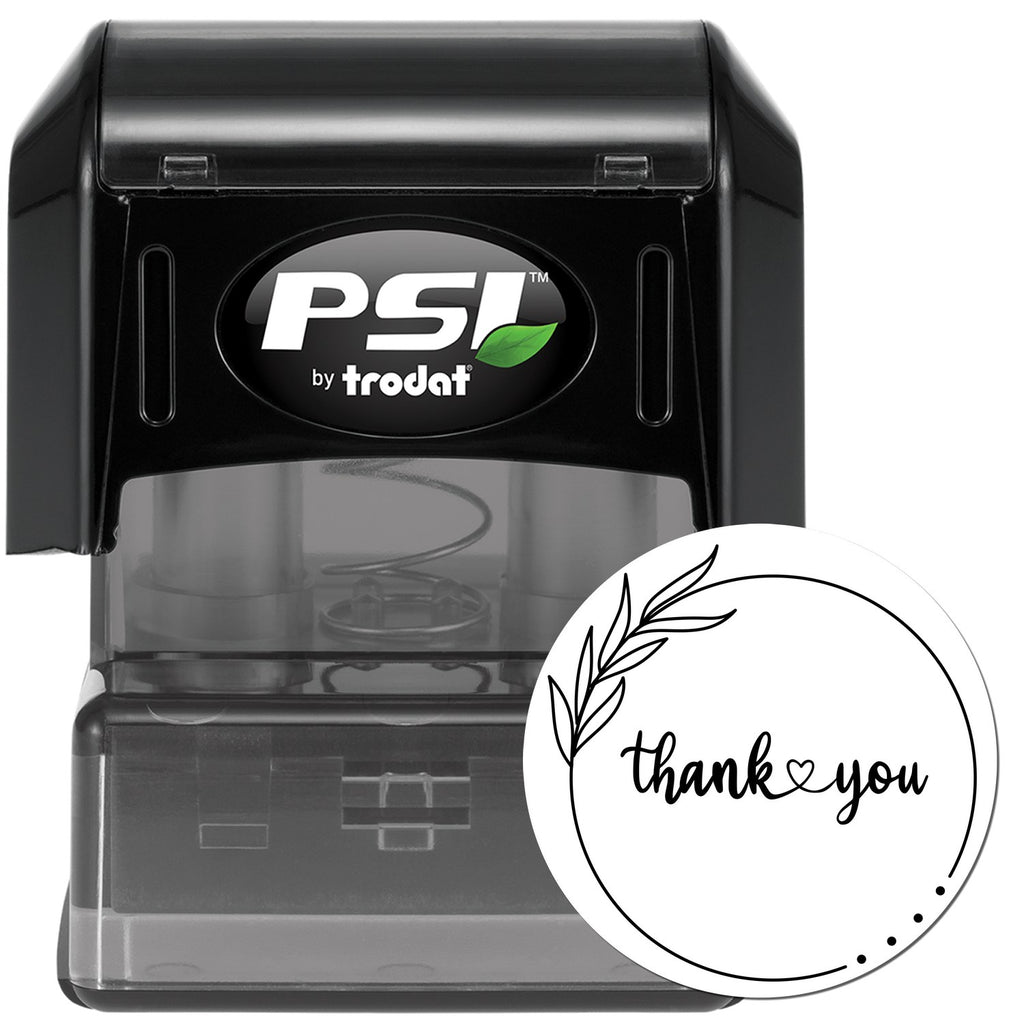 - VERSATILE CUSTOM DESIGN: Elegant 1-5/8" round stamp featuring graceful leaf motif and modern script. Personalized "thank you" message with decorative heart detail adds sophistication to your correspondence.