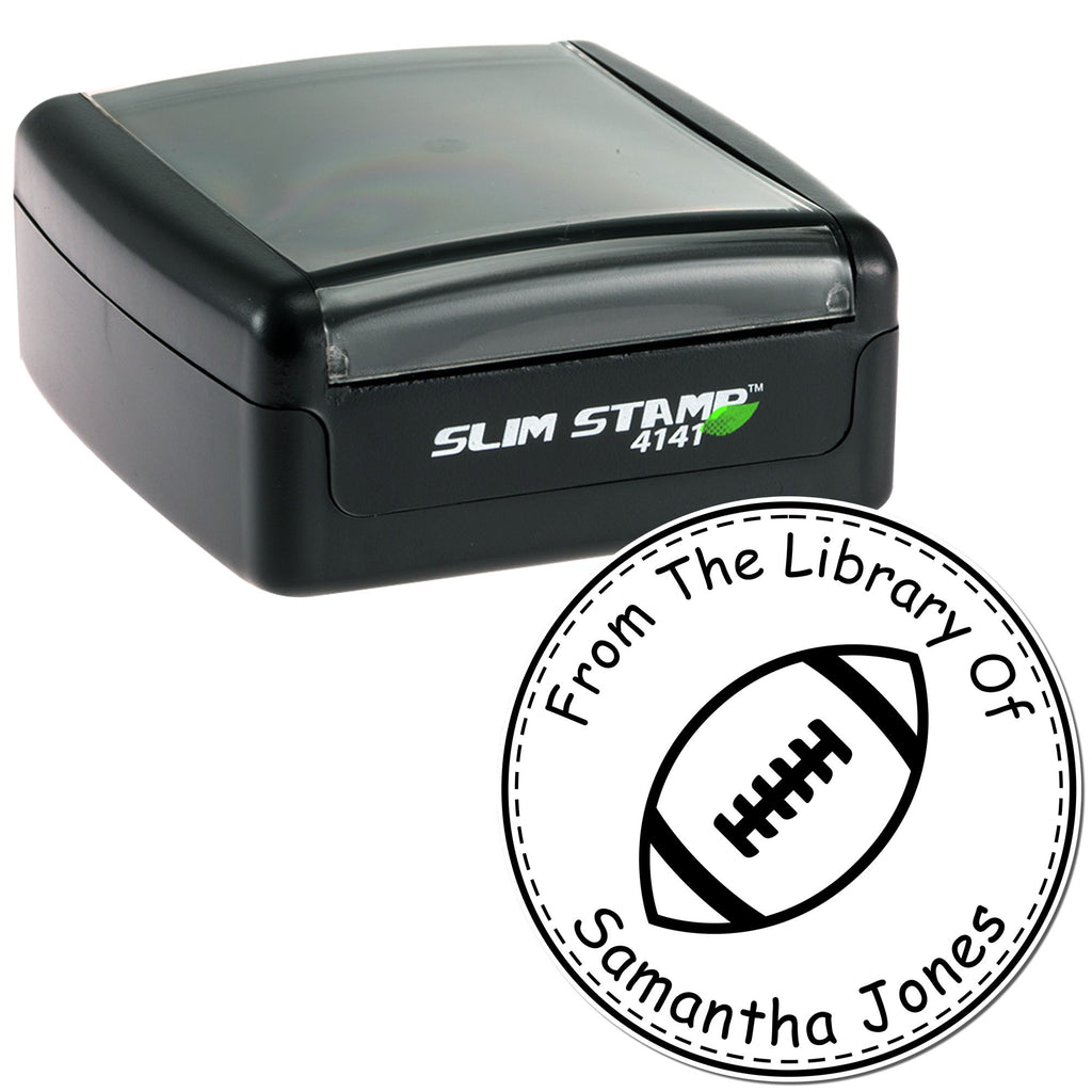 - ENHANCE YOUR STAMPING EXPERIENCE with our pre-inked energetic football personalized book name stamp! These slim stamps offer unmatched convenience and portability, ideal for busy professionals and educators. Carry it effortlessly in your purse or backpack for on-the-go stamping.