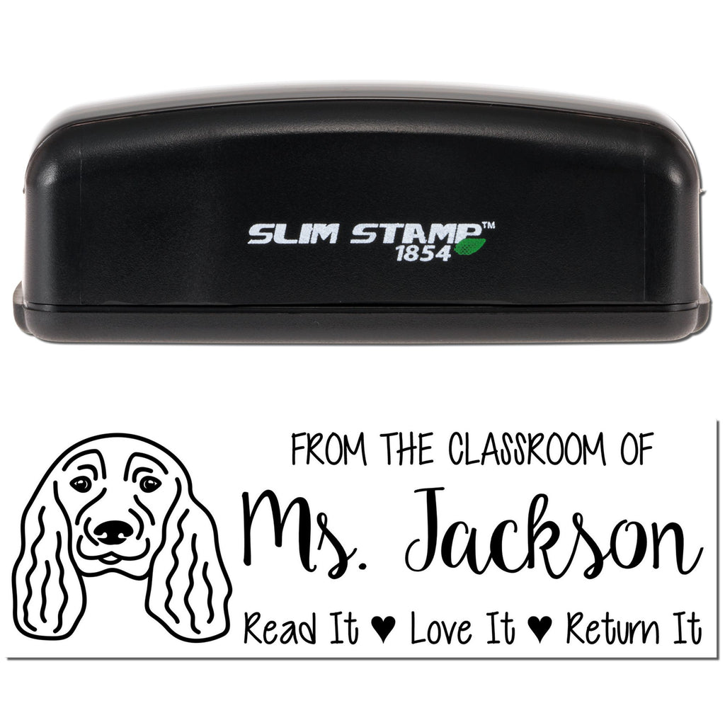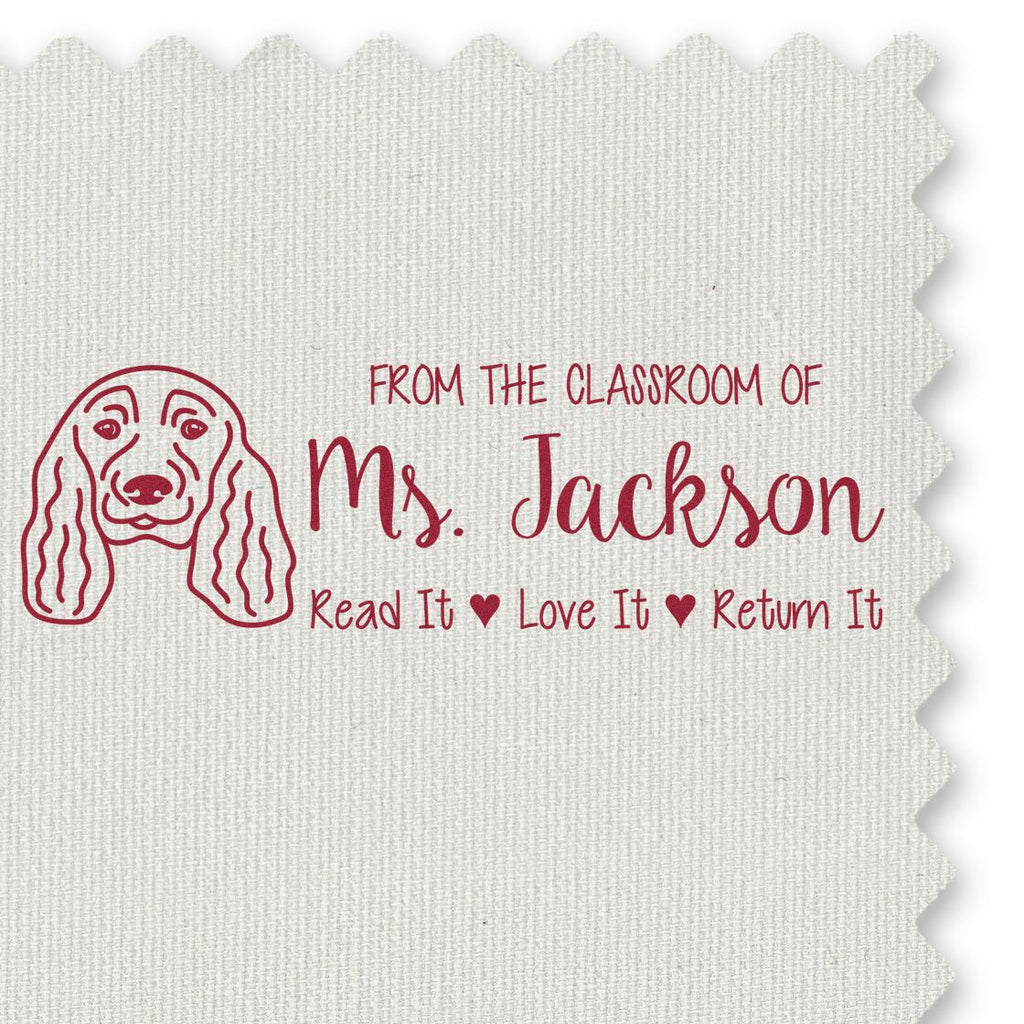 - PERSONALIZED PERFECTION: Custom-made stamp featuring your name and a charming English Cocker Spaniel outline, perfect for teachers and dog lovers. Makes book lending organized and personal with the "Read It, Love It, Return It" message.