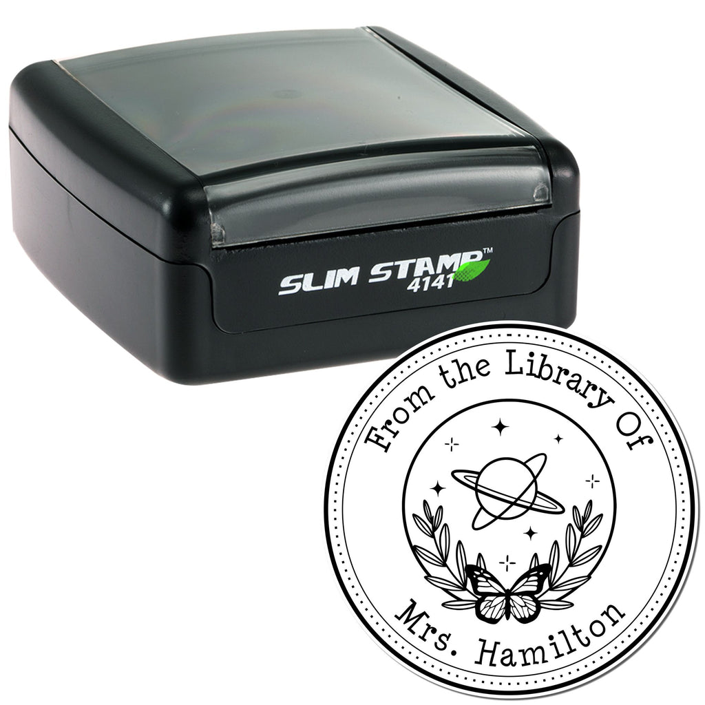 Pre-Inked Ethereal Planet Personalized Bookworm Stamp Highlights and Features