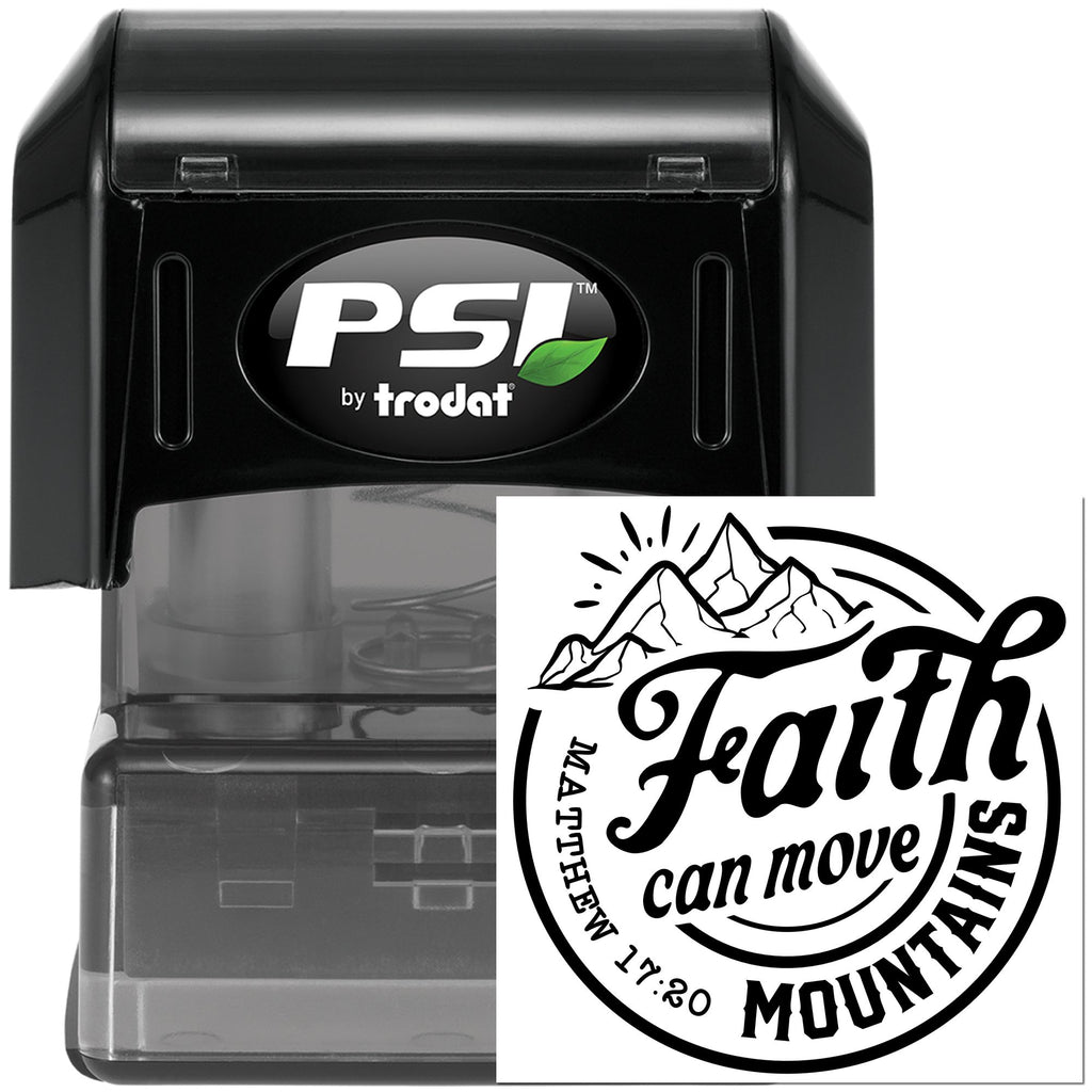 Pre-Inked Faith Moves Mountains Party Favor Stamp Highlights and Features