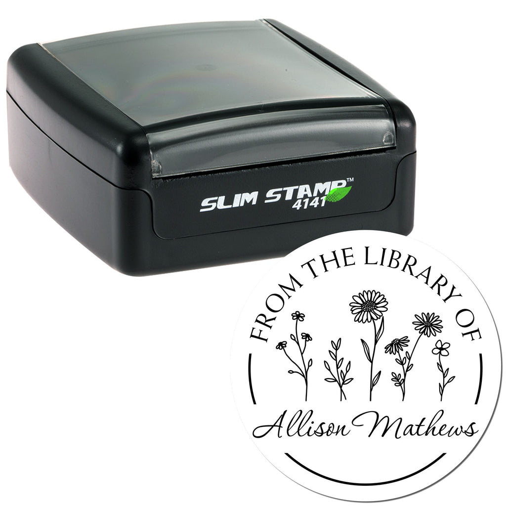 Pre-Inked Flowers all in a Line Personalized Personal Library Stamp Highlights and Features