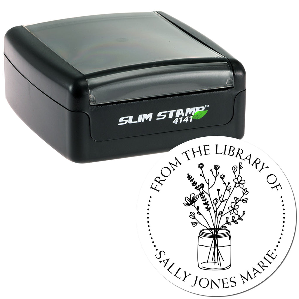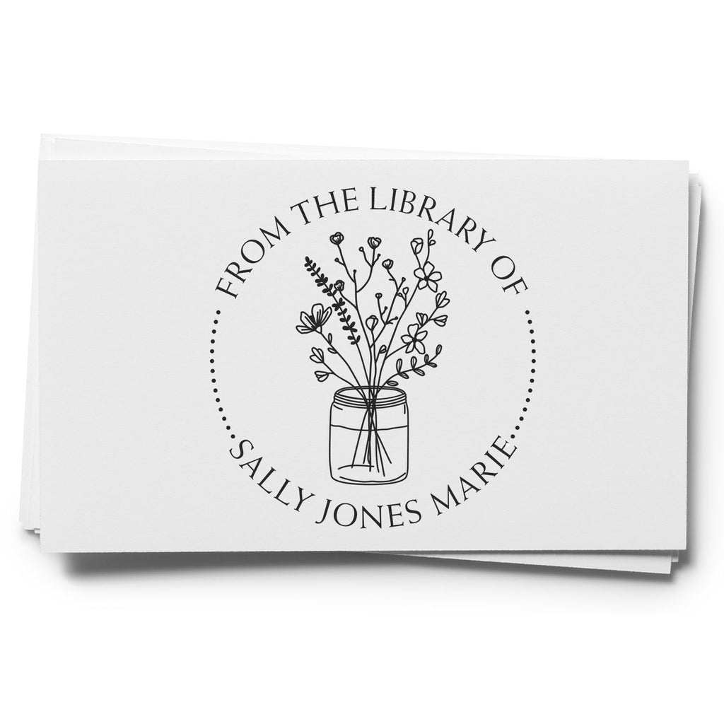 Pre-Inked Flowers in a Wide Glass Jar Personalized Private Library Stamp Highlights and Features