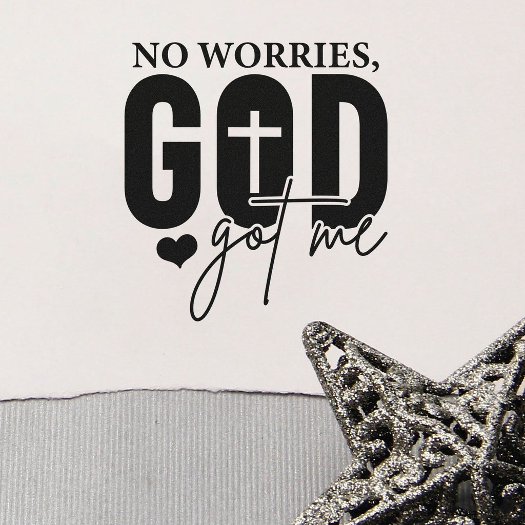 - Stamp boldly: 1-5/8" square imprint features a striking black-and-white “NO WORRIES—GOD’s got me” design (cross as the O plus a heart-accented cursive “got me”) for faith-centered décor that stands out.