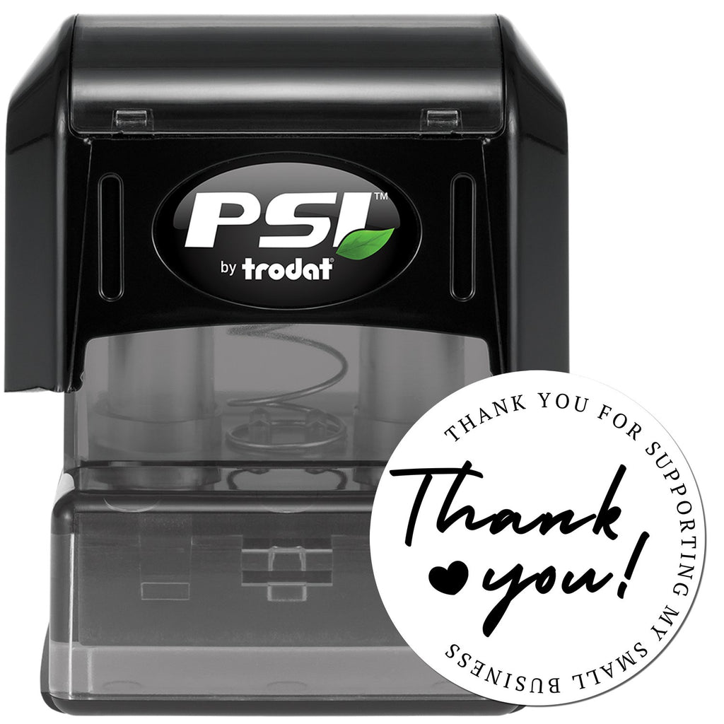 At the heart of this exquisite design is a bold, cursive "Thank You!" that exudes warmth and sincerity, perfectly complemented by a charming heart icon. Encircling this heartfelt message, the outer ring proudly states "THANK YOU FOR SUPPORTING MY SMALL BUSINESS" in a sleek, all-caps sans-serif font, ensuring your appreciation is communicated with clarity and professionalism.