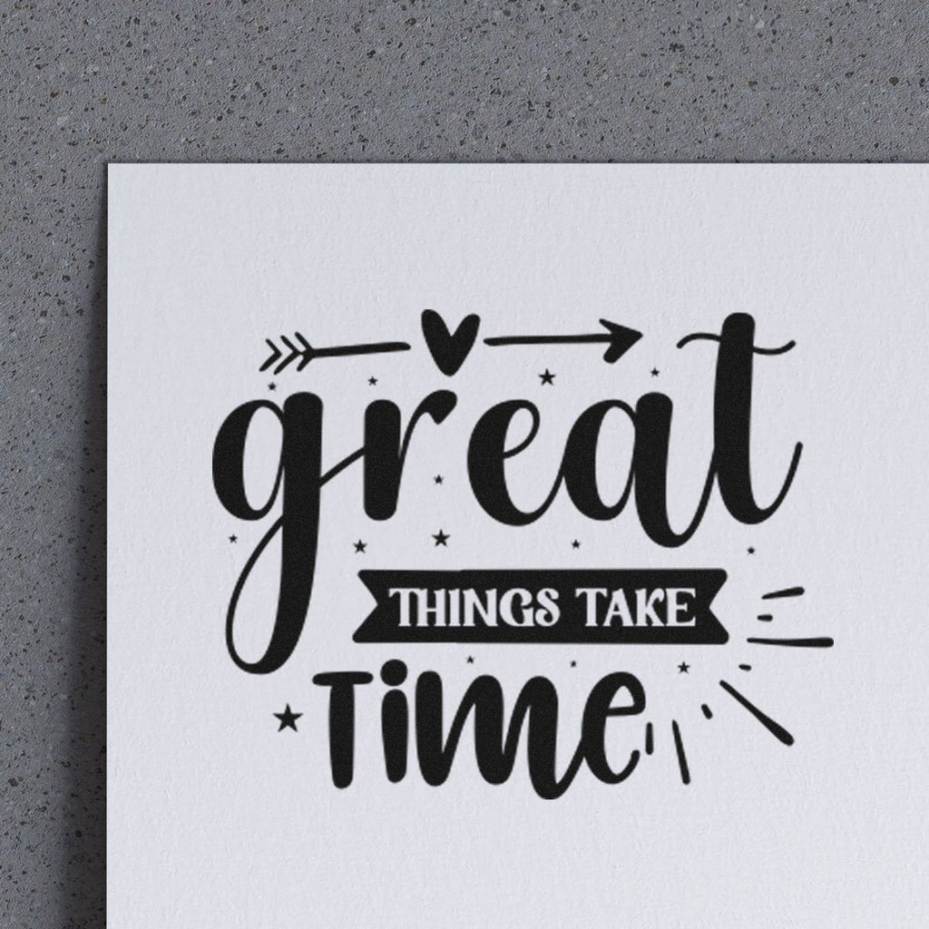 - Professional: Razor-sharp 1-5/8" square design prints the playful “great things take time” hand-lettered caption with stars and a heart-tipped arrow for a polished, consistent look every time.