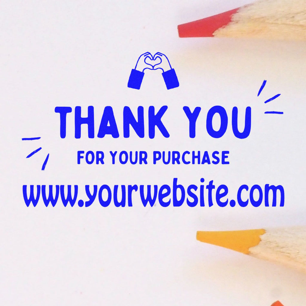 Introducing our delightful and engaging design that speaks volumes of gratitude! Featuring bold, hand-drawn typography that proudly says "Thank You," this design is perfect for leaving a lasting impression. Customize the space with your website to make it uniquely yours. The charming graphic of hands forming a heart above the text adds a personal and heartfelt touch, conveying sincere appreciation to your customers. Its casual and inviting style is ideal for building strong connections and showing your customers just how much they mean to you. Make your message of thanks unforgettable with this captivating design!