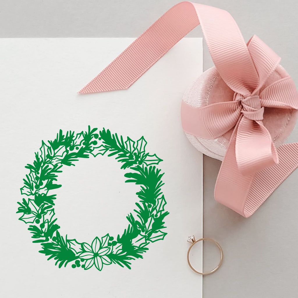 Pre-Inked Holly Leaf Wreath Journaling Stamp Highlights and Features