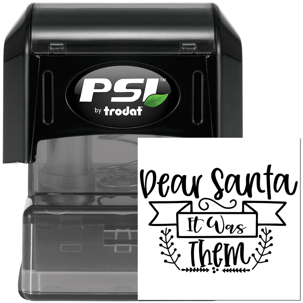 WMeet your new holiday crafting sidekick: the PSI Pre-Inked “Dear Santa, it was them” 1-5/8" square crafting stamp — playful hand-lettered script in a ribbon banner with festive sprigs, ready to make every page and card merry.