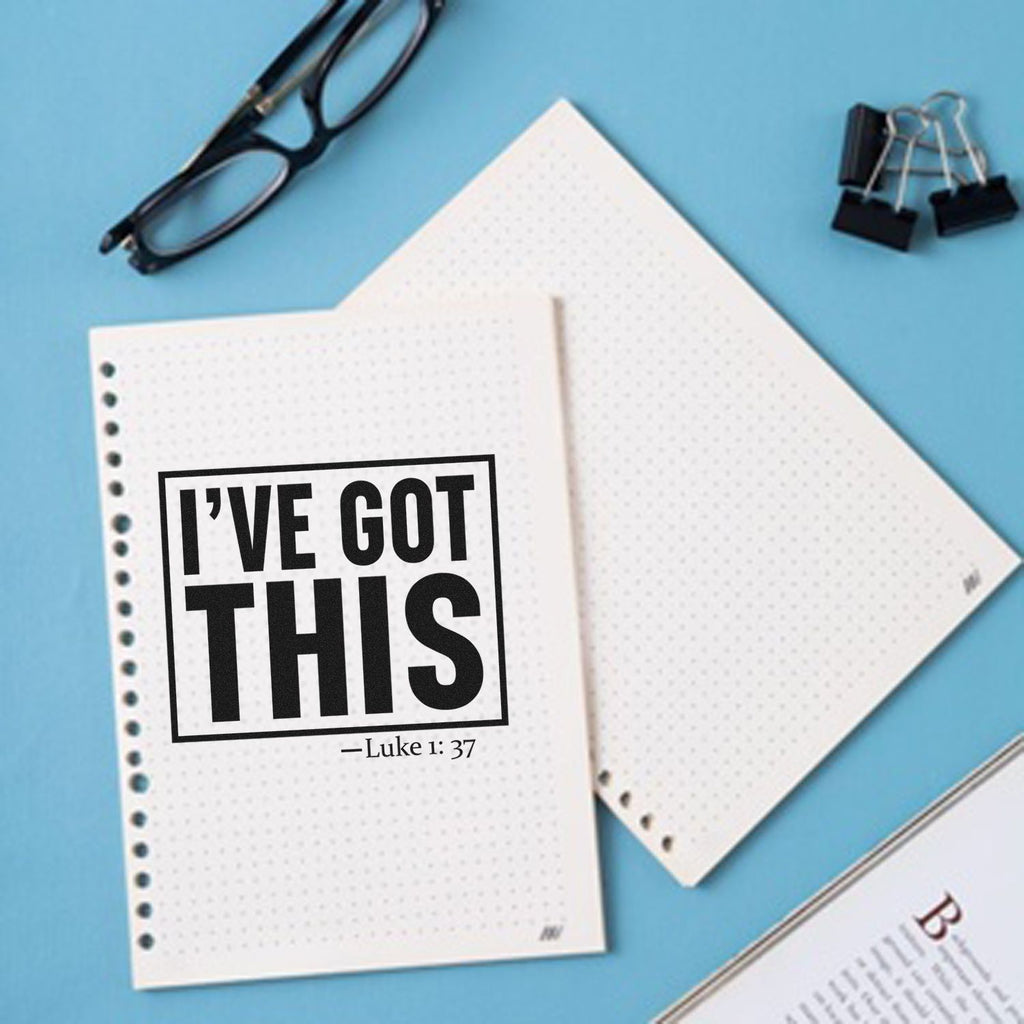 Pumped-up creativity starts with the Pre-Inked “I’VE GOT THIS” Paper Craft Stamp, your go-to boost of confidence for every project! Designed for scrapbookers and handmade card makers, this 1-5/8" square stamp features a bold black-and-white layout with “I’VE GOT THIS” in strong, standout letters framed in a clean rectangle, plus a subtle “Luke 1:37” caption for a faith-filled finishing touch. It’s the perfect mix of encouragement and style for cards, journal pages, gift tags, and more.